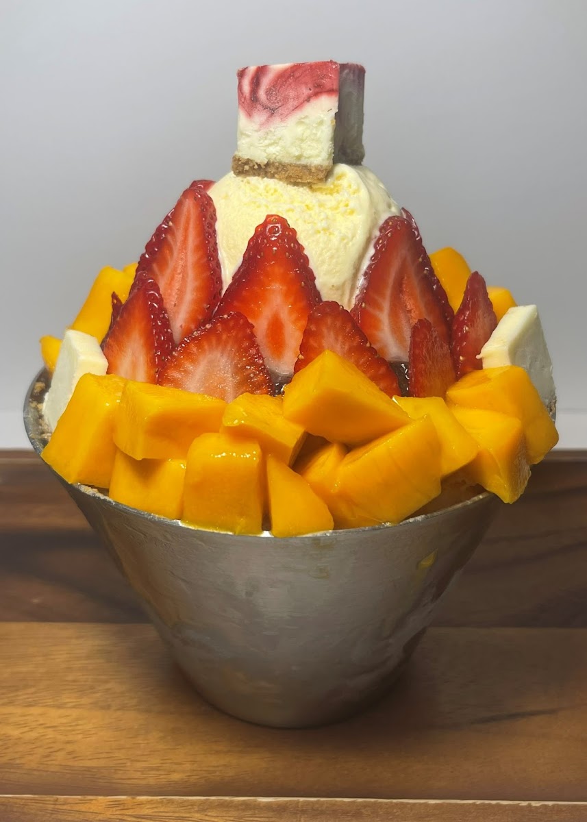 Love pleasant surprises as we were nearby and wanted to get dessert with my friends. I’m so glad we tried this place as initially I pointed to the wall which was a mega berry. Let’s say when I saw the price of $18 I was quite shock and disappointed with such a high price. What we got was one of the most delicious ice shaving, multi layered dessert, shaved ice, mung bean paste, condensed milk, mango, strawberry, and random yummy slices of cheesecake. Definitely can fill up four people after dinner or lunch or two if you are really hungry. This dessert place easily skyrocketed to the top three favorite dessert dishes for me